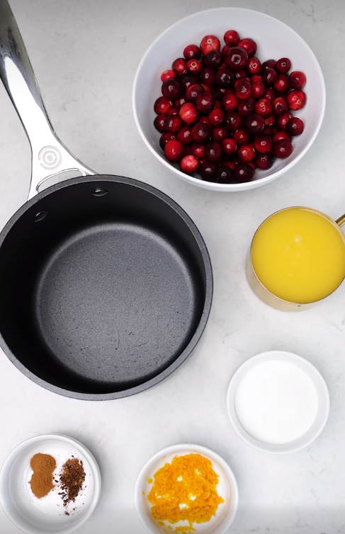In a saucepan, combine all ingredients and simmer over medium heat for 14-15 minutes or until cranberries burst. Reserve some whole cooked cranberries for garnish. Press mixture through a sieve for smooth coulis.