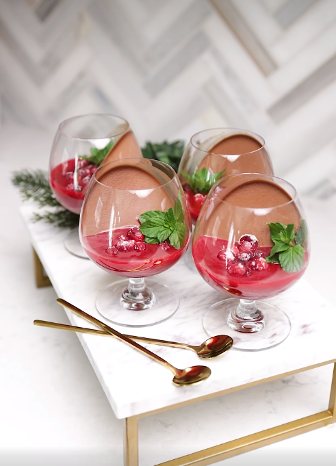 Despite its sophisticated appearance, creating this elegant treat is super easy to make. Skip the fuss of fancy molds – serve it in clear glasses, adorned with sugared cranberries or chocolate shavings for a touch of elegance.
