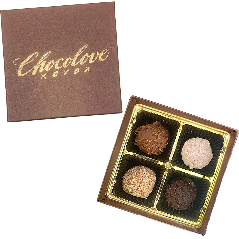 Indulge in the artisanal mastery of Chocolove's Master Chocolatier with this elegant gift box of four decadent handmade truffles, a heartfelt expression of love and celebration. This box features a symphony of flavors including Coconut, Raspberry, Lavender, and Dark Truffle chocolates.