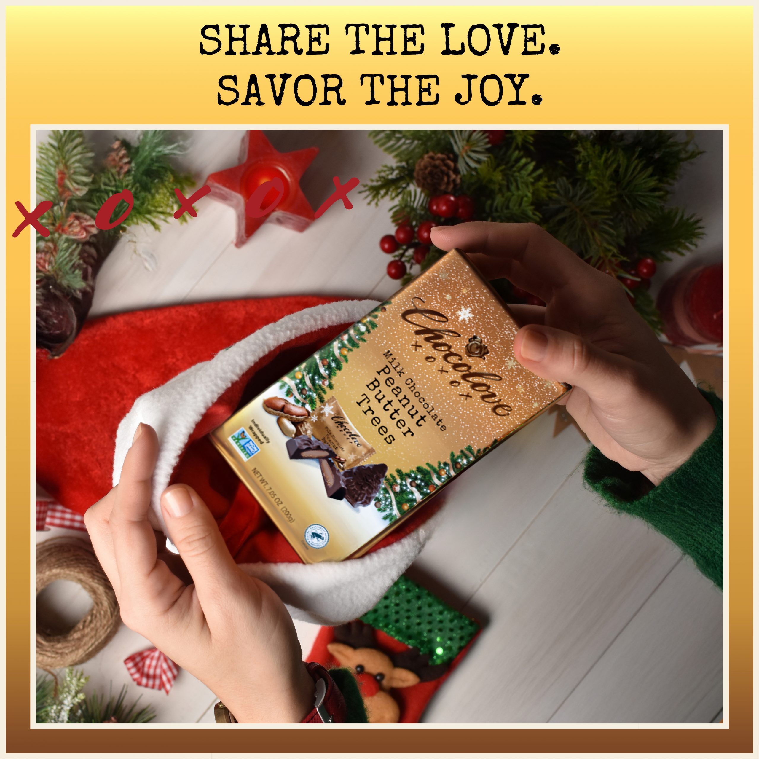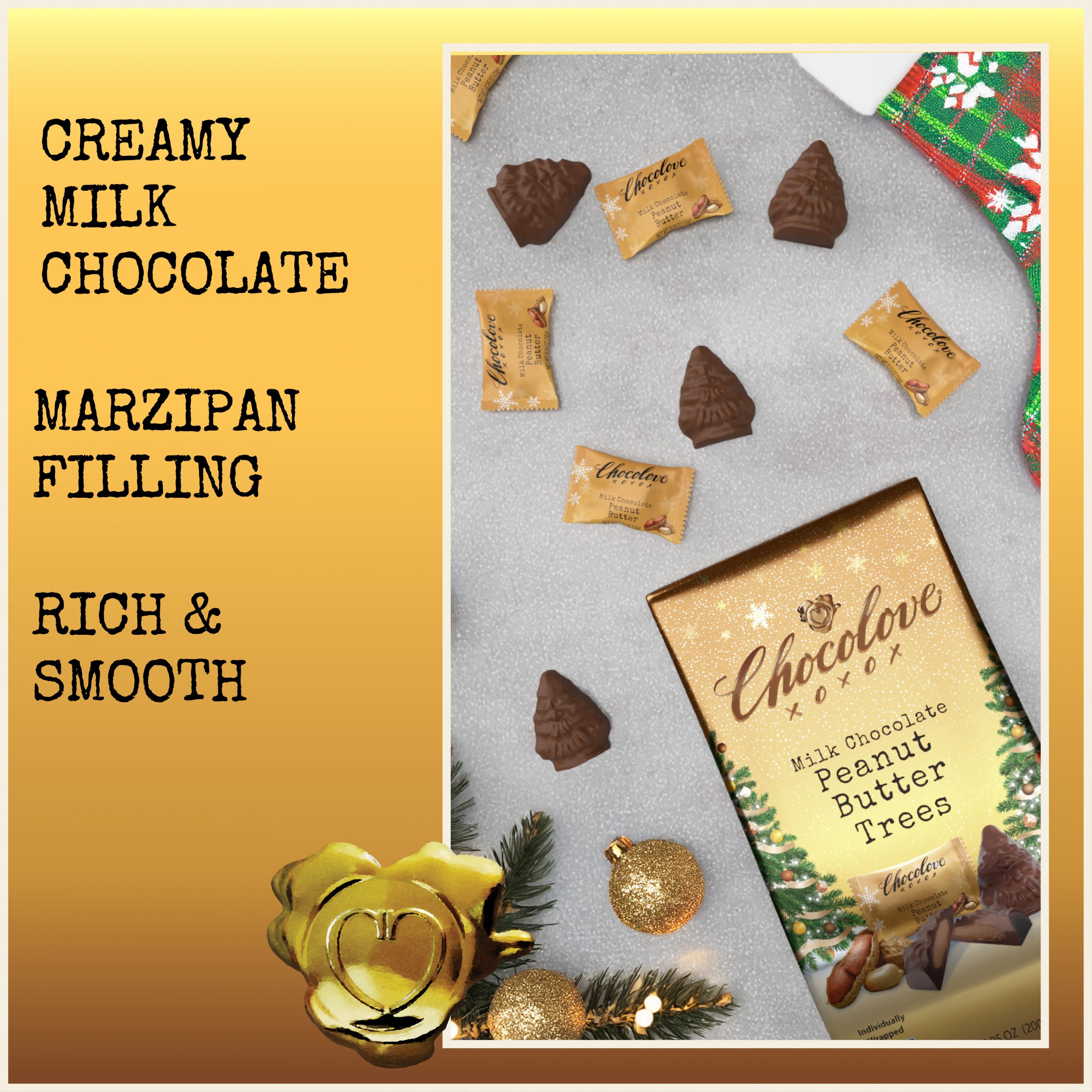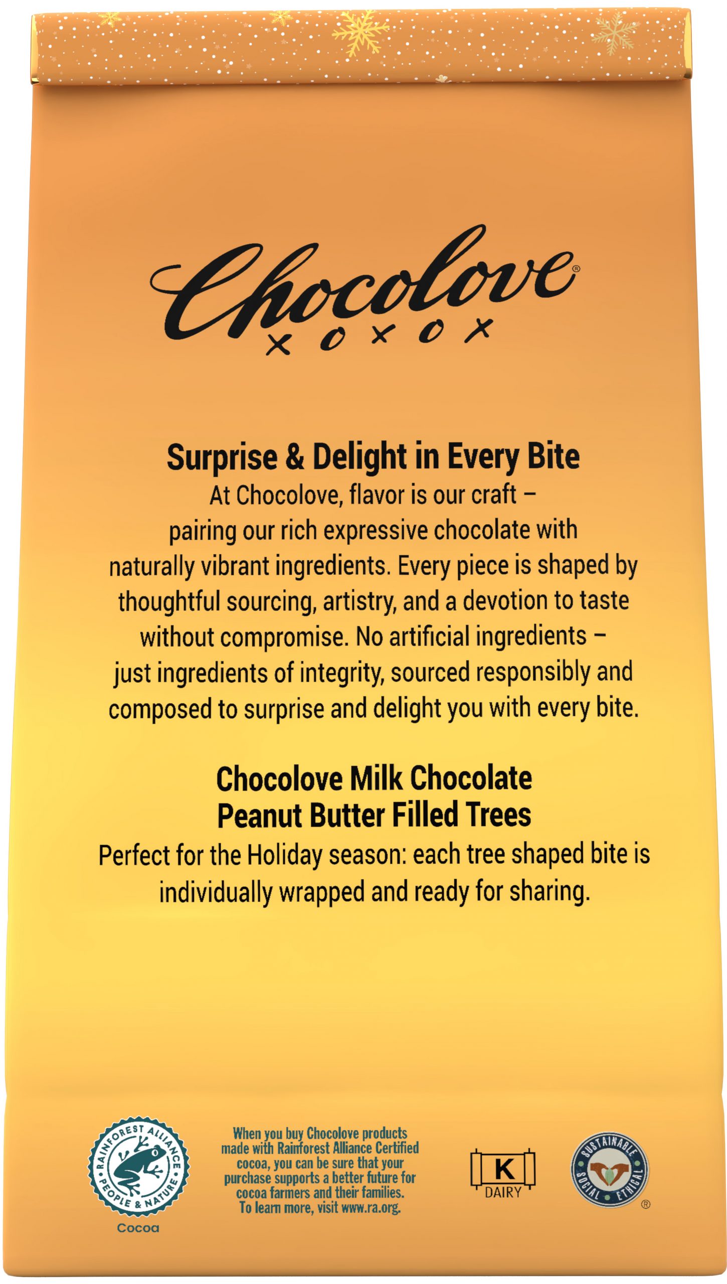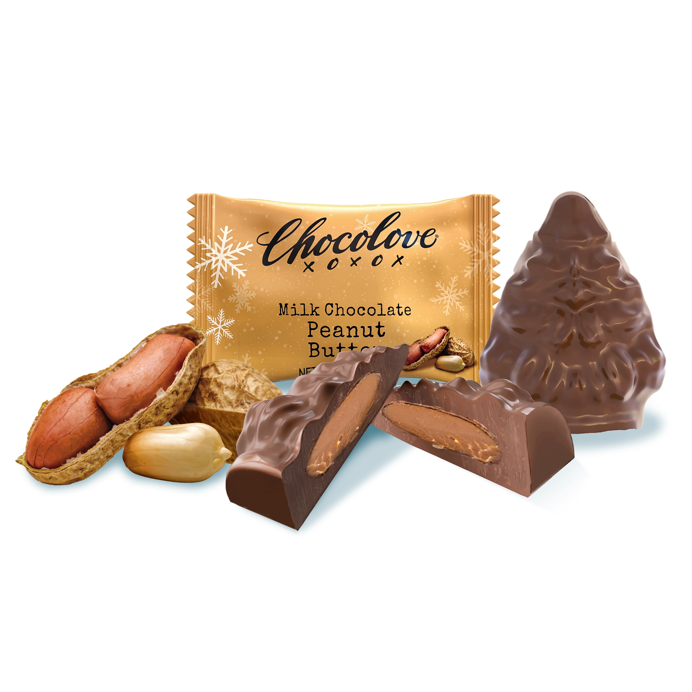 Bring a touch of holiday comfort to your celebrations with our Peanut Butter in Milk Chocolate Holiday Bites. Shaped like Christmas trees, each bite pairs creamy milk chocolate with smooth, lightly salted peanut butter for a classic, salty-sweet indulgence.